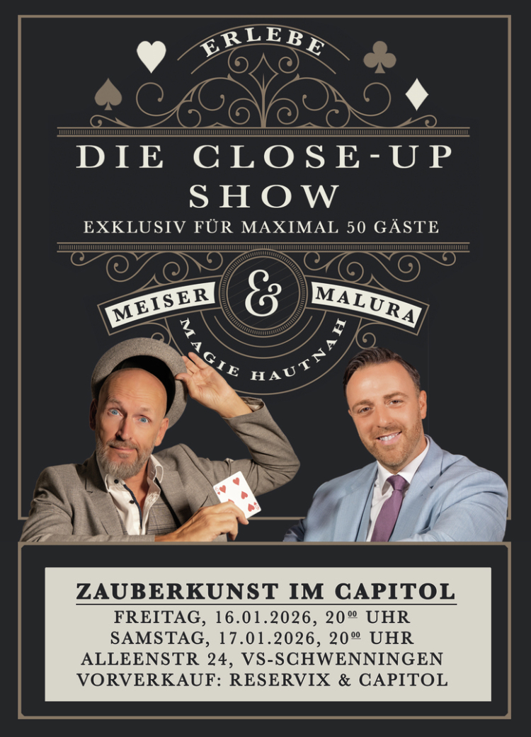 Eric Meiser berät Sie gerne auch zu Ihrer Veranstaltung. Ob ein kurzer Auftritt oder eine abendfüllende Show, ob für 10 oder für 500 Gäste, ob auf einer Tagung oder am Abend auf einer Gala, das Programm wird auf Ihre Ansprüche hin individuell ausgearbeitet.